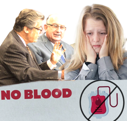 Ein weiterer Fall: Die Mutter einer Teenager-Tochter unterschrieb ein von der WTG vorgefertigtes Dokument, in dem sie eine Eigenbluttransfusion ablehnte. Sie war bereit, das Risiko einzugehen, ihr Kind zu verlieren, anstatt diese routinemäßige Behandlung zuzulassen. Die Operation wurde ohne diese Möglichkeit durchgeführt - das Mädchen überlebte nicht. Die Mutter muss nun jeden Tag mit dem Gedanken leben, dass ihre Tochter umsonst gestoben ist und heute noch leben könnte. Solche Fälle sind keine Einzelfälle